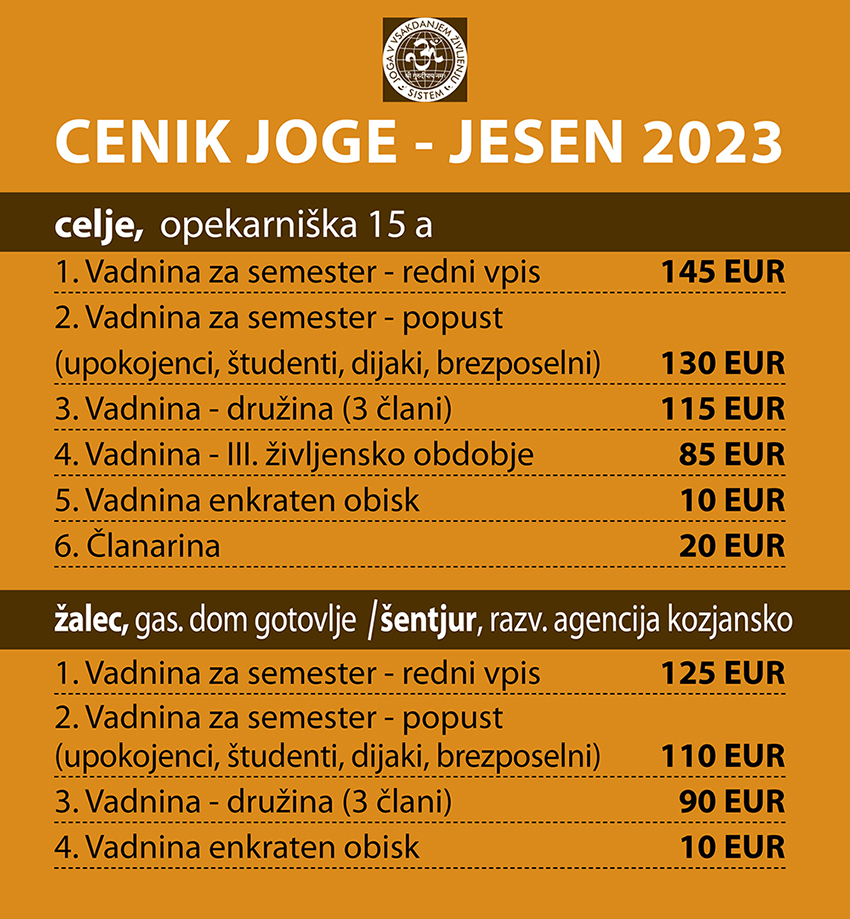 Če obiskujete samo Jogo za III. življenjsko obdobje, vadnina znaša samo 85 EUR.